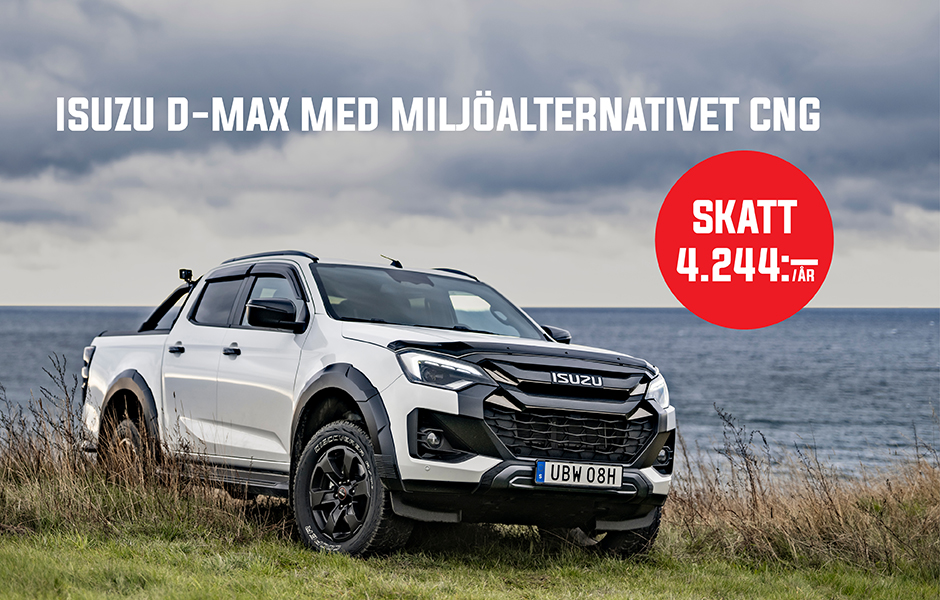 Till alla nya Isuzu-pickuper erbjuds CNG-paketet som tillval. Det är en komplett konvertering som gör det möjligt för dig att tanka och köra med en inblandning av biogas i det normala dieselbränslet eller HVO100. Konverteringen förändrar inte motorn eller dess egenskaper. En gastank i komposit monteras där reservhjulet vanligtvis sitter och ett tanklock monteras bredvid registreringsskylten bak.